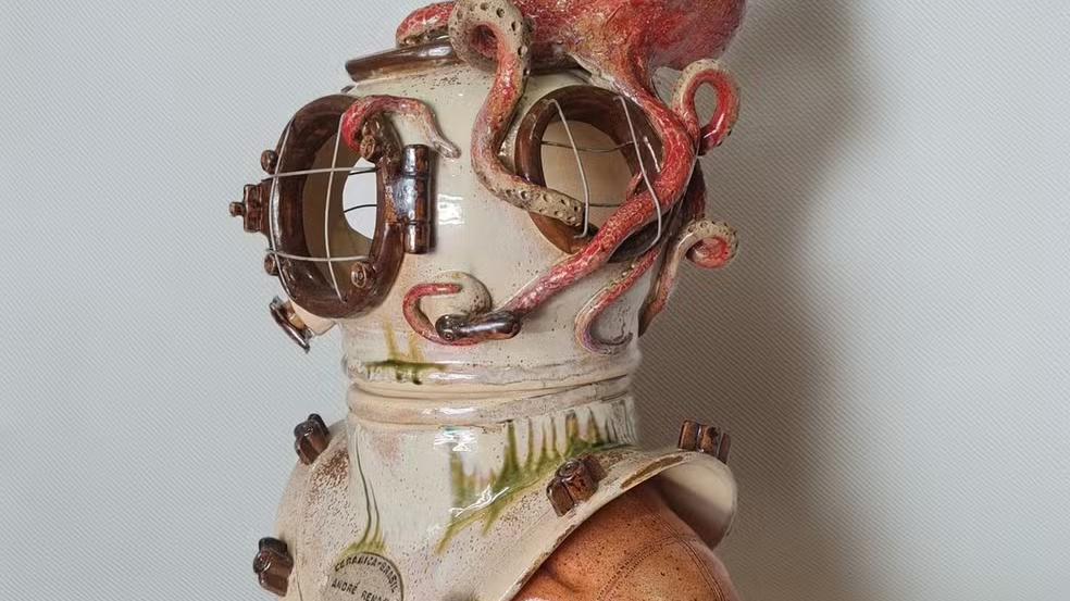 O litoral de Pipa, em Tibau do Sul, no Rio Grande do Norte, transformou-se em matéria-prima criativa para o ceramista André Renan, de 42 anos, vencedor do primeiro lugar no 5º Salão Ceramistas do Brasil, prêmio nacional concedido nesta quinta-feira (22). A obra premiada, intitulada Resgate nas Profundezas, apresenta um escafandro envolto por um polvo e se destacou entre trabalhos enviados de diversas regiões do país.