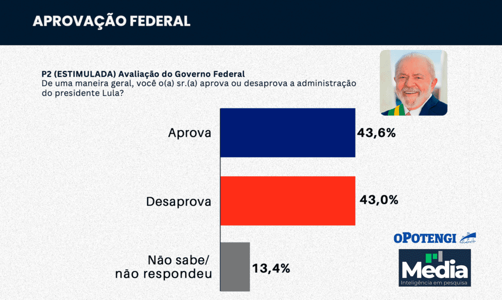 De acordo com os dados, 43,6% dos natalenses aprovam a administração de Lula, enquanto 43% desaprovam. Outros 13,4% não souberam ou preferiram não opinar.