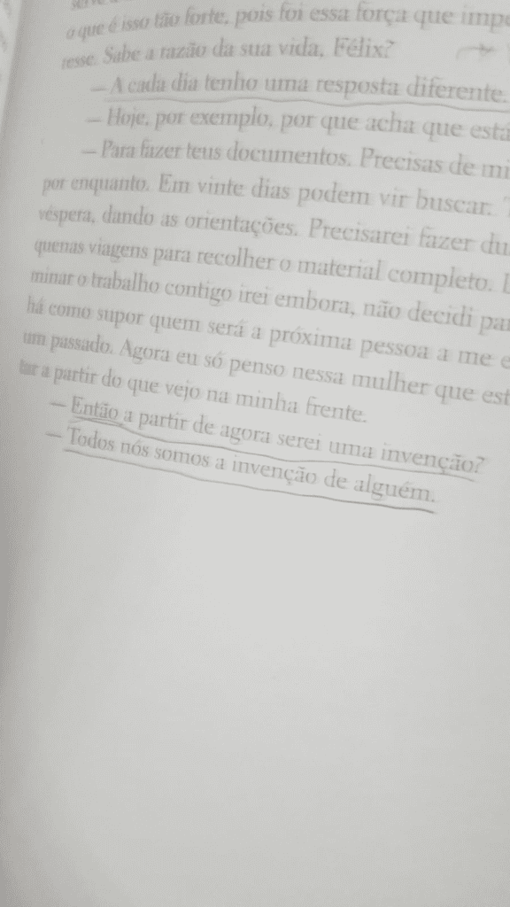 No entanto, Cida sonha com outra pessoa, com outra vida, e tem certeza: foi amada, muito amada nessa antiga vida. Sabe que aqueles que deixou para trás sentem sua falta, mas não sabe como voltar. Sendo assim, uma das minhas referências favoritas aparece no enredo: o personagem Félix Ventura. Félix é, na verdade, uma figura que eu já conhecia (não de outras vidas, só de outros livros mesmo). O personagem foi criado por José Eduardo Agualusa, dramaturgo angolano que tive o prazer de descobrir em uma disciplina de Literatura Portuguesa Contemporânea na universidade. Voltando, Félix é um homem muito procurado para vender histórias — isto mesmo, ele vende o que escreve sobre o passado de alguém: é só pedir e ter uma bolada na mão que aí estão passaportes, documentos e uma boa vida passada.